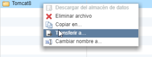 Una vez quitada del inventario vamos al datastore donde la tenemos almacenada → botón derecha sobre la CARPETA de la plantilla→ transferir a → elegir la raiz del datastore de destino.