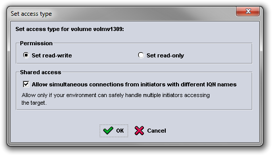 Habilitamos el acceso compartido desde múltiples iniciadores.