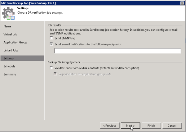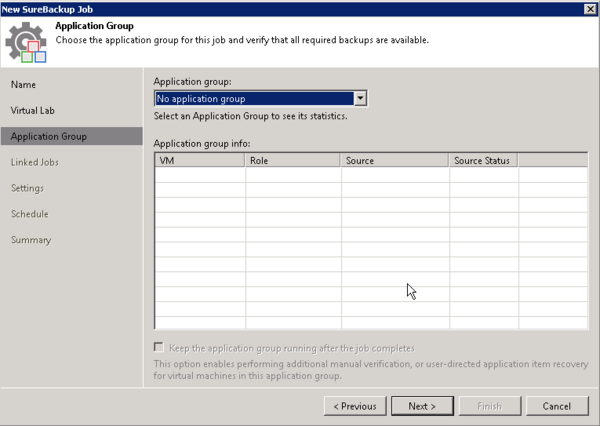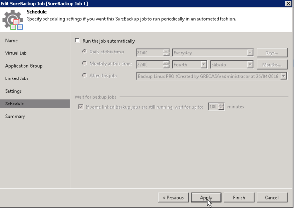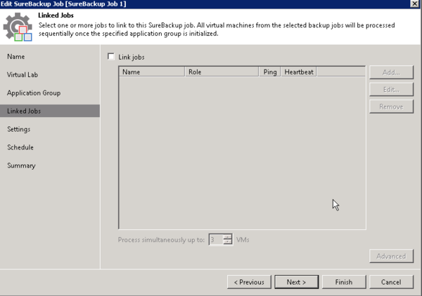 Podemos también enlazar alguno de los Jobs que tengas creados anteriormente en Veeam. Por ejemplo si ya tenemos creado otro SureBackup Job que comprueba alguna funcionalidad determinada.