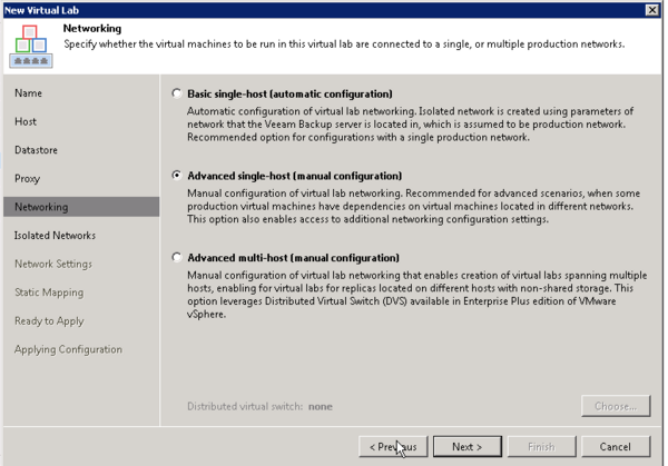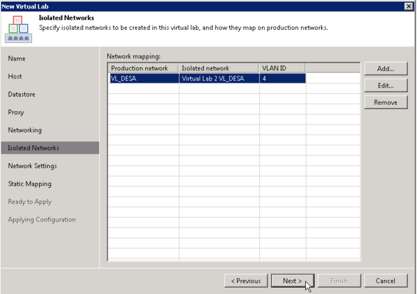 Para empezar a usar esta funcionalidad los primero que tenemos que hacer es crear un Virtual Labs dentro de la opción Bakup Infrastruture →SureBackup. → Virtual Labs
