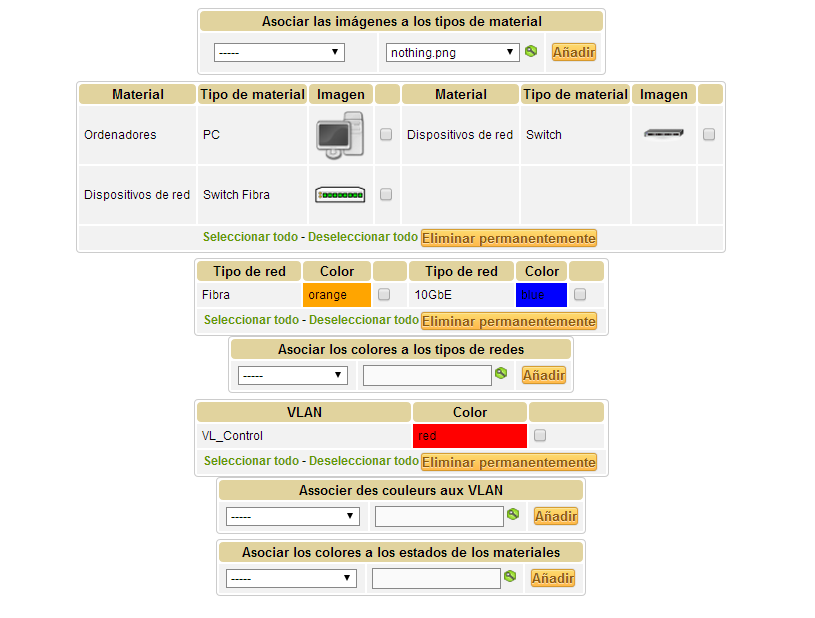 - Una vez instalado debemos de asociar las imágenes a los elementos de nuestra red. Para ello pulsamos sobre glpi→configuración→plugins→network architectures