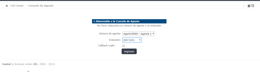En el modo agent se utiliza cuando tenemos agentes exclusivamente para realizar campañas o atender llamadas a las colas del call center. Los agentes una vez que se validan permanecen conectados a la cola a la espera de las llamadas.