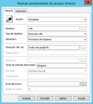 - Accción = Actualizar → Creamos o actualizamos el nuevo acceso directo