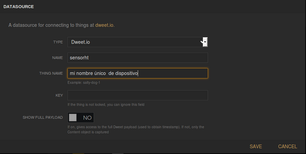 En primer lugar vamos a usar la plataforma http://dweet.io, en la cual no hay que registrarse para usarla, basta con crear un nombre de dispositivo único para llamar a la HAPI