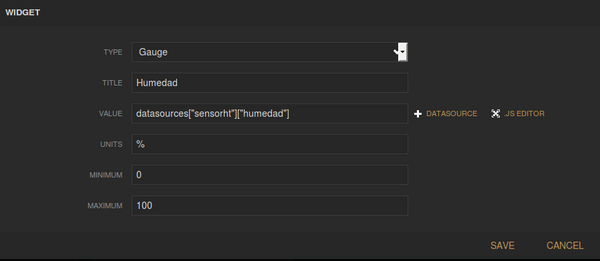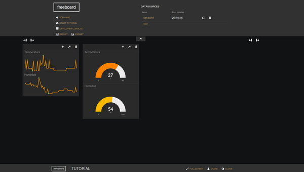 Como última parte de esta práctica vamos a visualizar gráficamente las medidas de humedad y temperatura usando la plataforma https://www.freeboard.io