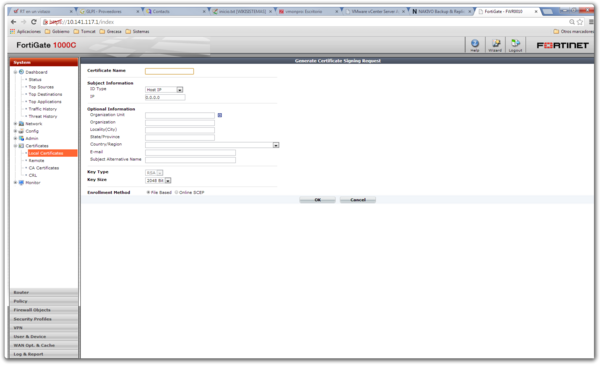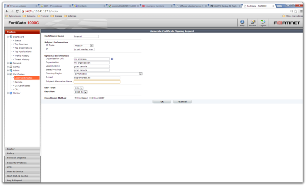 Generar certificado para el Fortigate