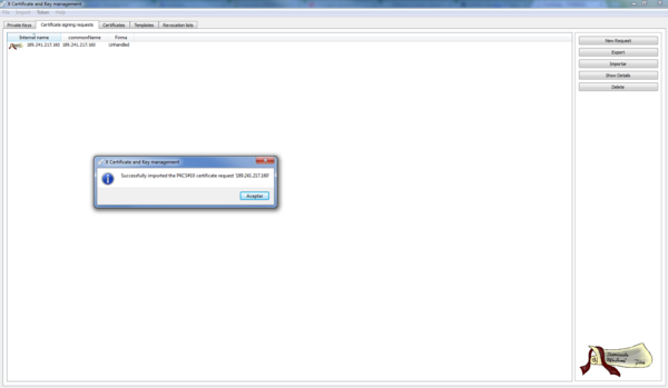 Nos generará un fichero con la extensión csr que deberemos de importar en el XCA para firmar