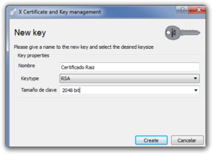 Seleccionamos el tamaño de la clave y pulsamos el botón Create