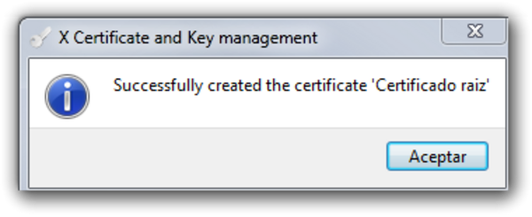 Pulsamos Aceptar y nos debe aparecer una ventana indicandonos que el certificado ha sido creado