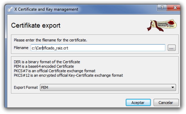 Lo siguiente es exportar el certificado raíz para tener una copia de seguridad. Para ello hacemos lo siguiente: