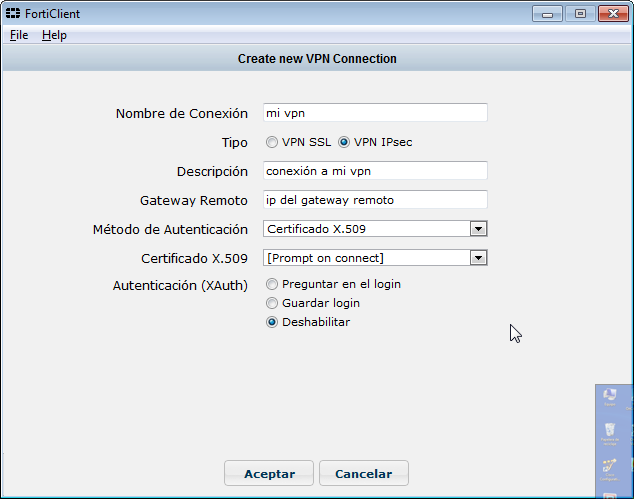 La autenticación XAuth la he deshabilitado para simplificar, pero sería recomendable activarla tanto el fortigate como en el cliente