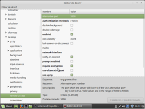 . Ejecutarlo llamando a dconf-editor y cambiar el parámetro que se encuentra en la ruta org→gnome→desktop→remote-access y cambiamos el valor de la opción requiere-encryption