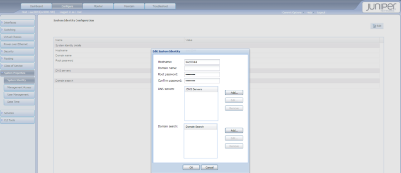 Entramos en la interfaz web y vamos a la pestaña Configure . En la barra de menú de la izquierda System Identity . Editamos y ponemos la nueva contraseña del root