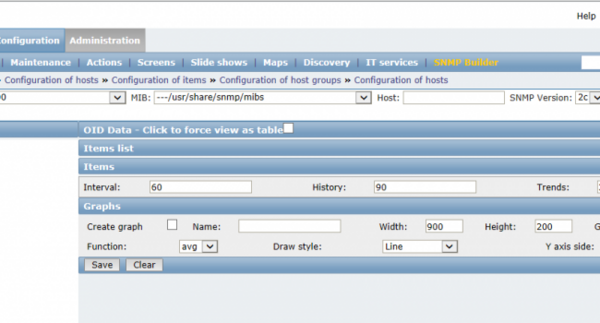 Otra manera de encontrar un ítem para monitorizar nuestro equipo es a través de la herramienta SNMP BUILDER que nos proporciona zabbix. Para acceder a ella debemos seleccionar “ Configuration/SNMP Builder”.