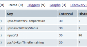 Este trigger nos avisará cuando el último valor (last) recogido del tiempo de carga restante (upsAdvRunTimeRemaining) del equipo UPS0004 es menor que 10 minutos ({x} < 10m). Si se cumple la condición mandará un aviso por zabbix según la importancia de la incidencia que hayamos indicado.