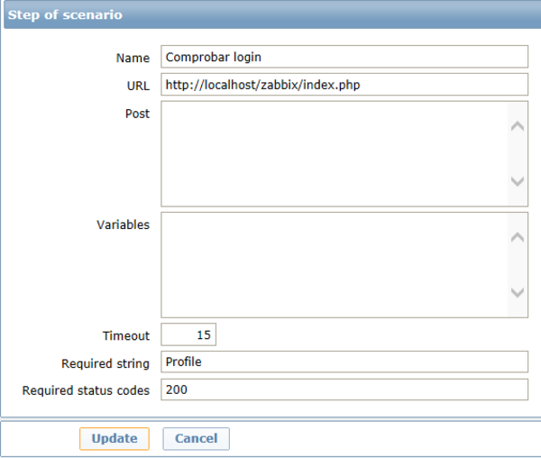 Mediante zabbix podemos monitorizar si nuestro servicio web funciona correctamente. Vamos a realizar una prueba con el propio Zabbix server.