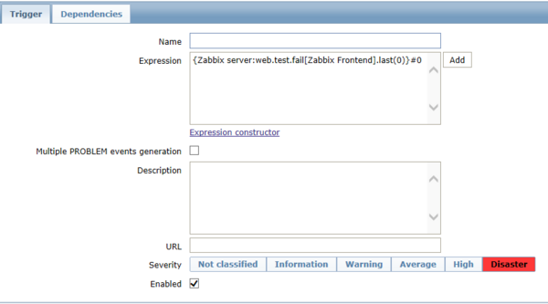 Para crear un trigger de un ítem web debemos ir a los triggers del host en el que hayamos creado el escenario web.