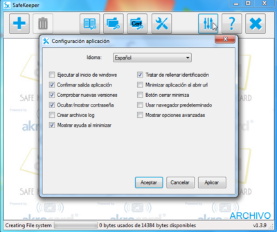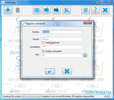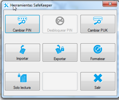 Su uso es muy sencillo, conectamos la tarjeta al ordenador mediante el lector y ejecutamos el programa SafeKeeper.exe que previamente nos hemos descargado. La primera vez que introducimos la tarjeta nos pedirá introducir dos números, el PIN y el PUNK, las cuales deberemos de anotar y guardar ya que en caso de perderlos no se podrá recuperar la información almacenada en la misma.