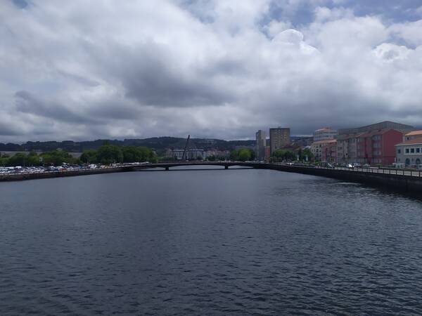 LLegamos a Pontevedra donde hacemos otra parada para reponer fuerzas y llevarnos una grata sorpresa con su bullicioso casco viejo. Una vez repuestas las fuerzas seguimos nuestro camino y cruzamos el río Lérez por el puente del Burgo.