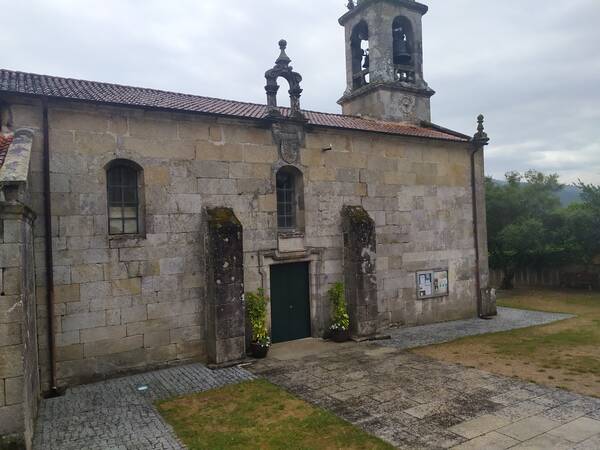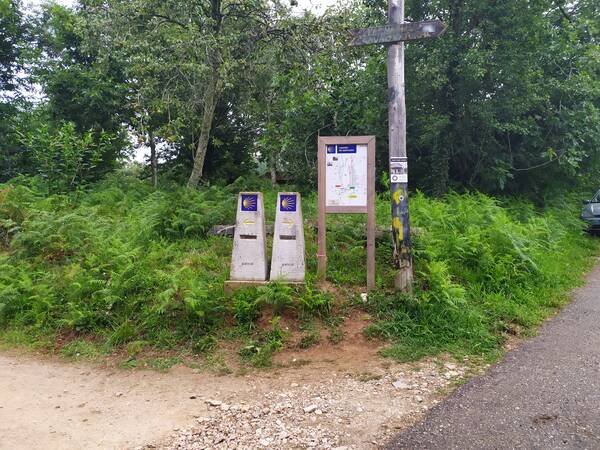 Salimos de Mos tomando el camino de subida y agradeciendo el habernos tomado un descanso antes de semejante repecho. Una vez que lleguemos a Santiaguiño comenzaremos el descenso hasta Redondella