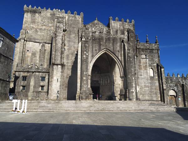 Salimos desde la catedral de TUI por las calles peatonales y pasamos por debajo del pasadizo de las arrepentidas.
