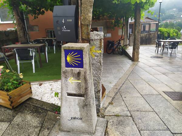 Una vez que llegamos a O porriño seguimos por distintos tramos asfaltados hasta llegar a la localidad de Mos, donde nos paramos en el bar O'Alpendre a tomarnos un respiro.