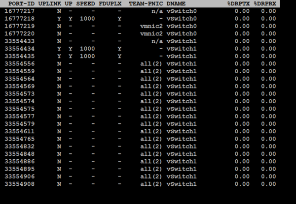 Presionamos f y elegimos las columnas A B C D E F K L y comprobamos las columnas %DRPTX y %DRPRX que corresponden con los Dropped Packages trasnmitted y received.