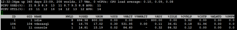 Ejecutamos el comando resxtop y aparecerá una ventana similar a esta