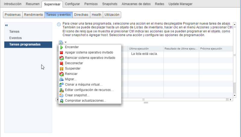Vamos por ejemplo a programar una tarea para migrar una máquina virtual a una hora programada. Para ello abrimos el vcenter → seleccionamos la mv →