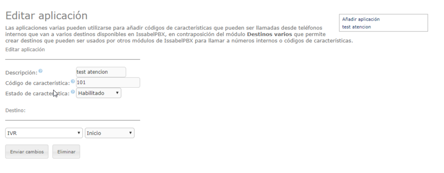 Dentro de Issabel podemos configurar para que al teclear una determinada numeración nos ejecute una determinada característica. Esto es muy últi por ejemplo si queremos hacer pruebas con un determinado módulo. Dentro de la configuración de Issabel → PBX → Configuración PBX → Opciones & Configuración → Otras Aplicaciones