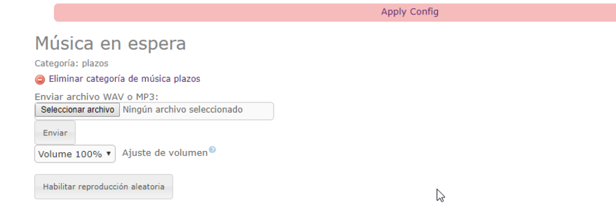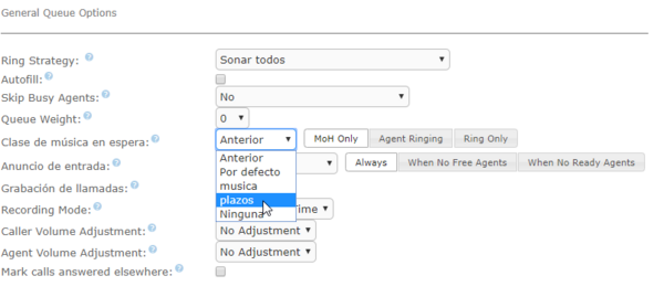 El siguiente paso sería asignar a una cola, extensión o grupos de extensiones la música en espera previamente añadida
