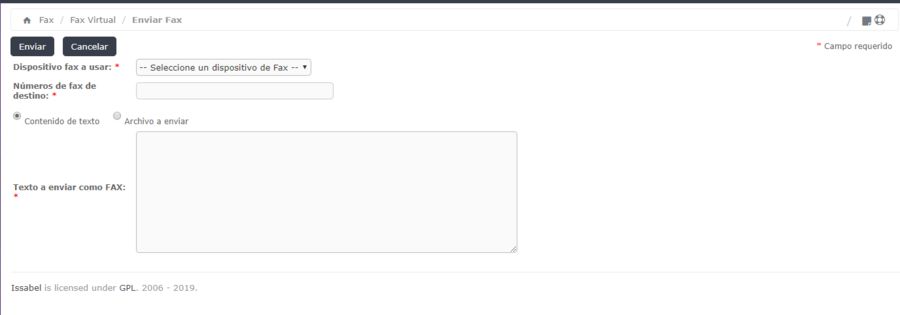 Una vez creado creado los elementos necesarios, para enviar el fax tenemos que ir a la opción Fax -Fax Virtual → Enviar Fax